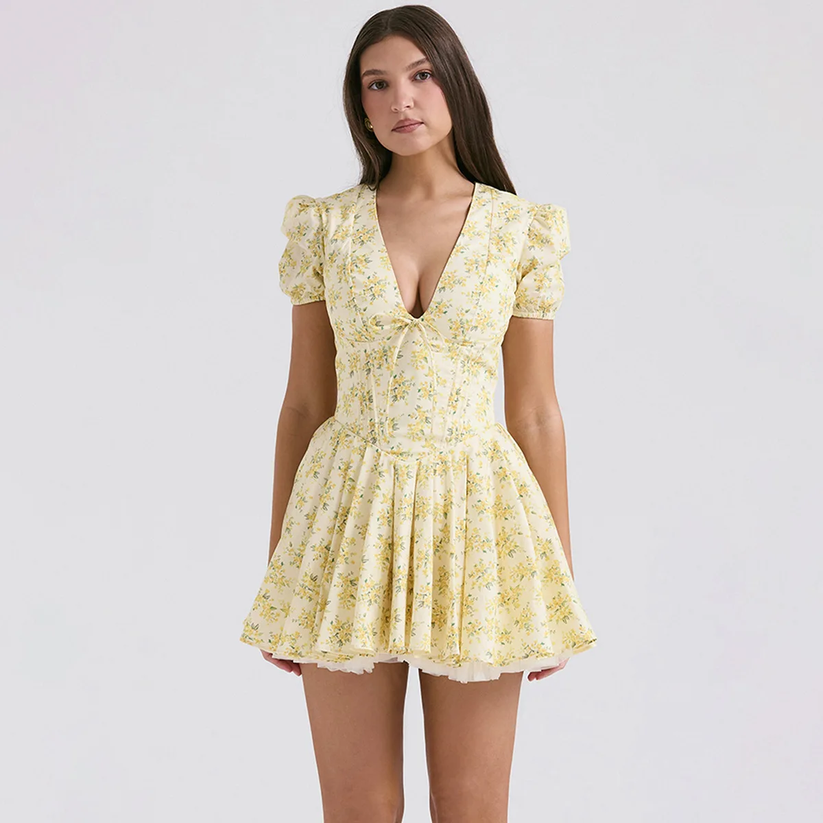 Introducing the Suninheart Fashion Summer Dress for 2024, a perfect blend of elegance and casual style. This stunning dress features a sexy V-neckline and charming puff sleeves that add a touch of sophistication to your summer wardrobe. Crafted from high-quality synthetic fiber and polyester, the tulle material ensures a lightweight and breathable fit, perfect for warm weather.