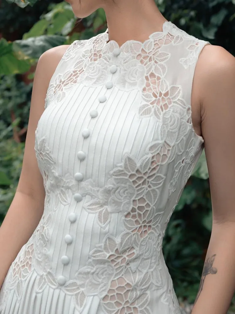 - Material and Design: Made from premium fabrics, this dress features delicate lace detailing and intricate rose embroidery. The white color enhances its elegance, making it a versatile piece for your summer wardrobe.