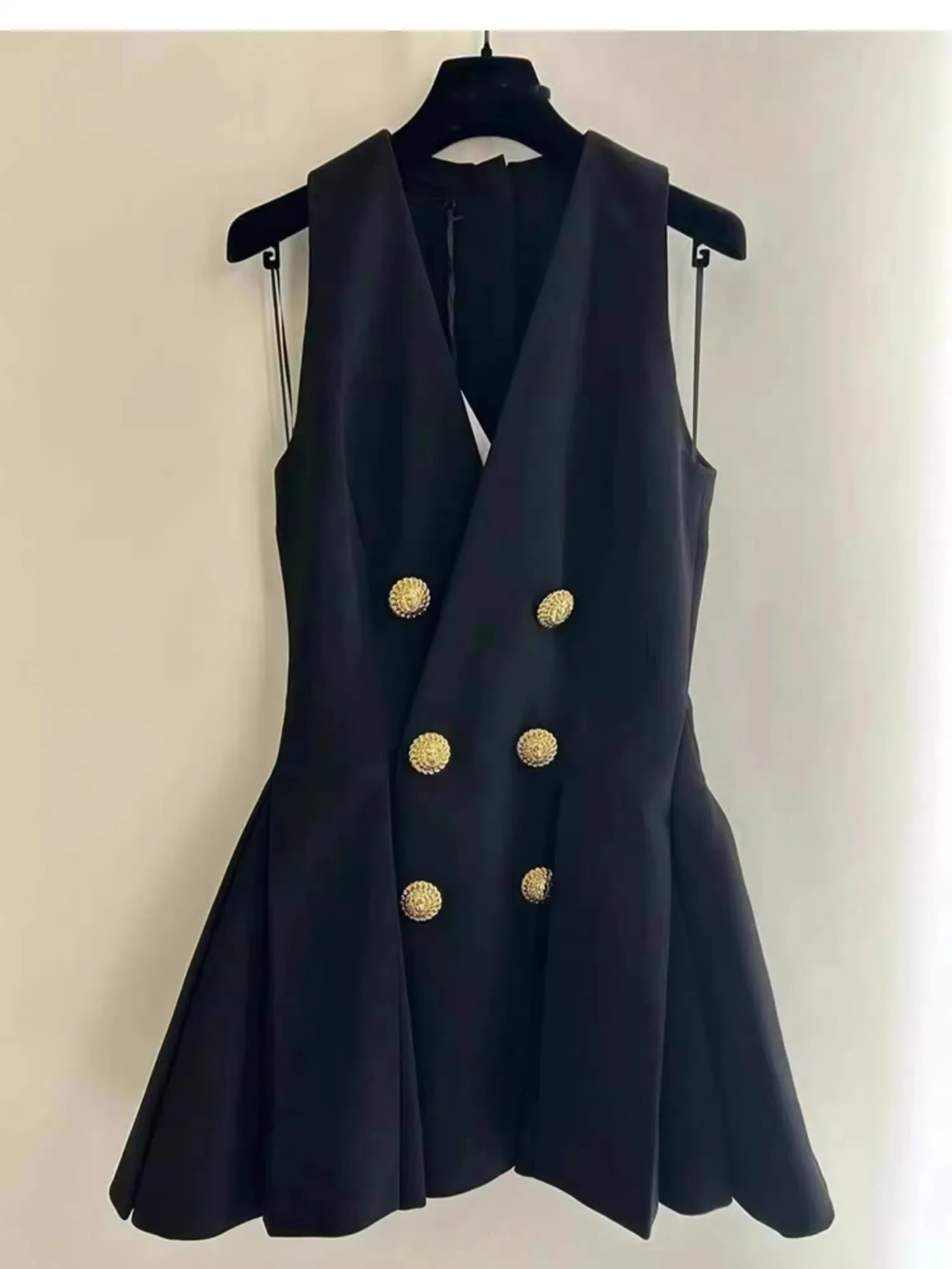 Embrace the retro charm of Y2K fashion with our latest summer 2024 women’s V-neck double-breasted sleeveless dress. Crafted with high-quality materials, this dress blends style and comfort seamlessly. The V-neckline adds a touch of elegance, while the double-breasted design provides a sophisticated flair.